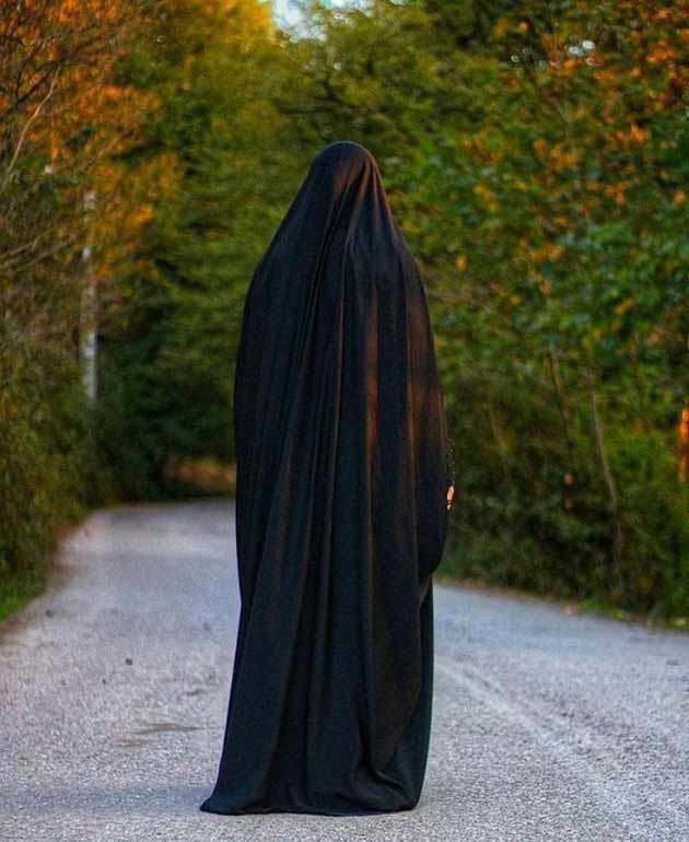 بانوي تحصيل كرده ايراني كه ساكن آمريكاست وانجا حجاب كامل دارد ودرايران هم كه آمده با چادر مشكي وارد ايران ميشود